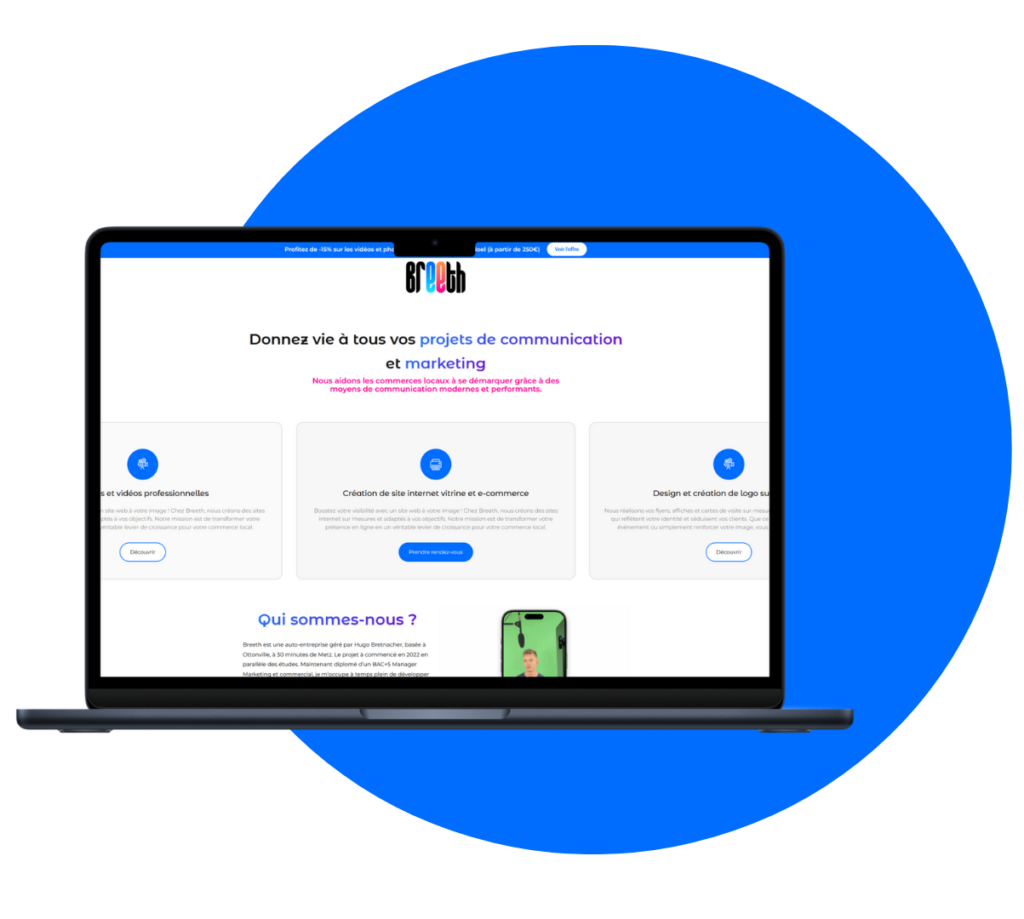 Un design moderne, cohérent avec votre identité visuelle et pensé pour renforcer votre image de marque. Nous prenons des photos et vidéos professionnelles pour illustrer vos services et avoir votre propore SUR-MESURE.